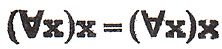 which can be read as: "For all 'x', 'x' equals: for all 'x', 'x'" or, to make it clearer: "Any possible version of something equals any possible version of a potentially different something." This statement is good for riling up mathematicians & is an example of what I call "P.N.T." or Perverse Number Theory (after the "T.N.T" or Typographical Number Theory that I was introduced to during this time through reading Douglas Hofstadter's wonderful book Gödel, Escher, & Bach ). I like this especially as toilet stall graffiti.